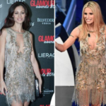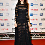 La giovane moglie del cantante è apparsa bellissima e in forma con un abito nero lungo trasparente, capelli sciolti e trucco semplice.