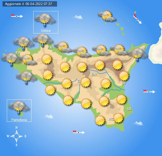 Locali piogge al mattino sulla costa occidentale dell’Isola, tempo asciutto altrove con ampi spazi di sereno; nel pomeriggio il tempo sarà stabile su tutto il territorio con cieli prevalentemente sereni, o al più poco nuvolosi lungo la costa settentrionale.