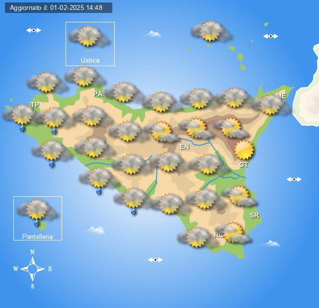 Molte nuvole in transito su tutta la regione nel corso della giornata con possibilità di piogge e acquazzoni sparsi sia al mattino che al pomeriggio. Ancora fenomeni in serata sui settori settentrionali dell’Isola, migliora altrove con maggiori spazi di sereno.