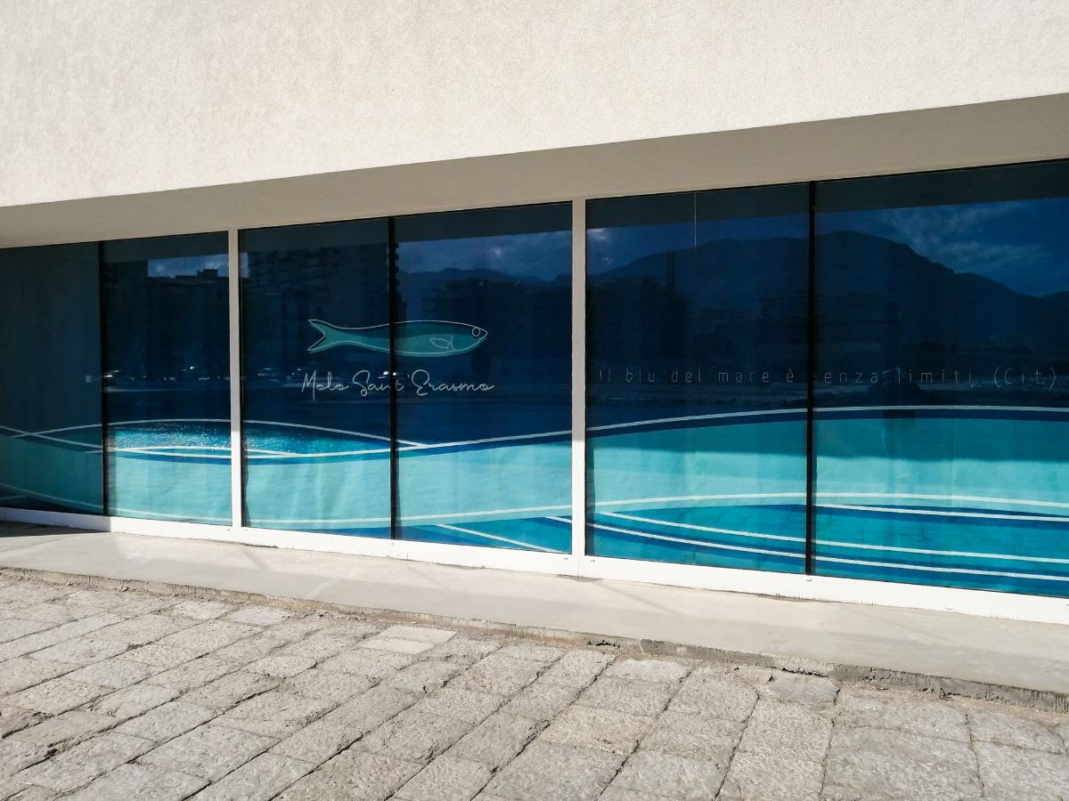 Il water front di Sant’Erasmo fortemente voluto dall’Autorità di Sistema portuale del Mare di Sicilia occidentale è protagonista nel progetto dell’intero ristorante. Il vetro e la ceramica bianca e blu sono gli attori principali di un nuovo modo di concepire il dialogo con i mare, fatto di una sinestesia profonda tra colori, sapori, profumi e sguardi all’orizzonte.
