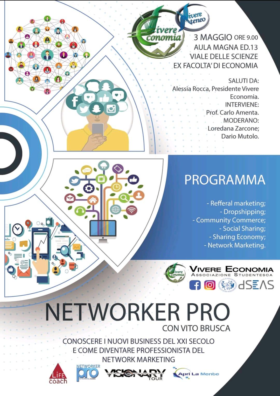 S’intitola “Networker Pro” l’evento che avrà come protagonista il docente, coach e networker Vito Brusca, inventore del brand “Visionary Tour”, corso con il quale ha fatto ingresso alla Kore di Enna e ora finalmente anche all’Università degli Studi di Palermo. Occasione speciale per capire come diventare un networker professionista.