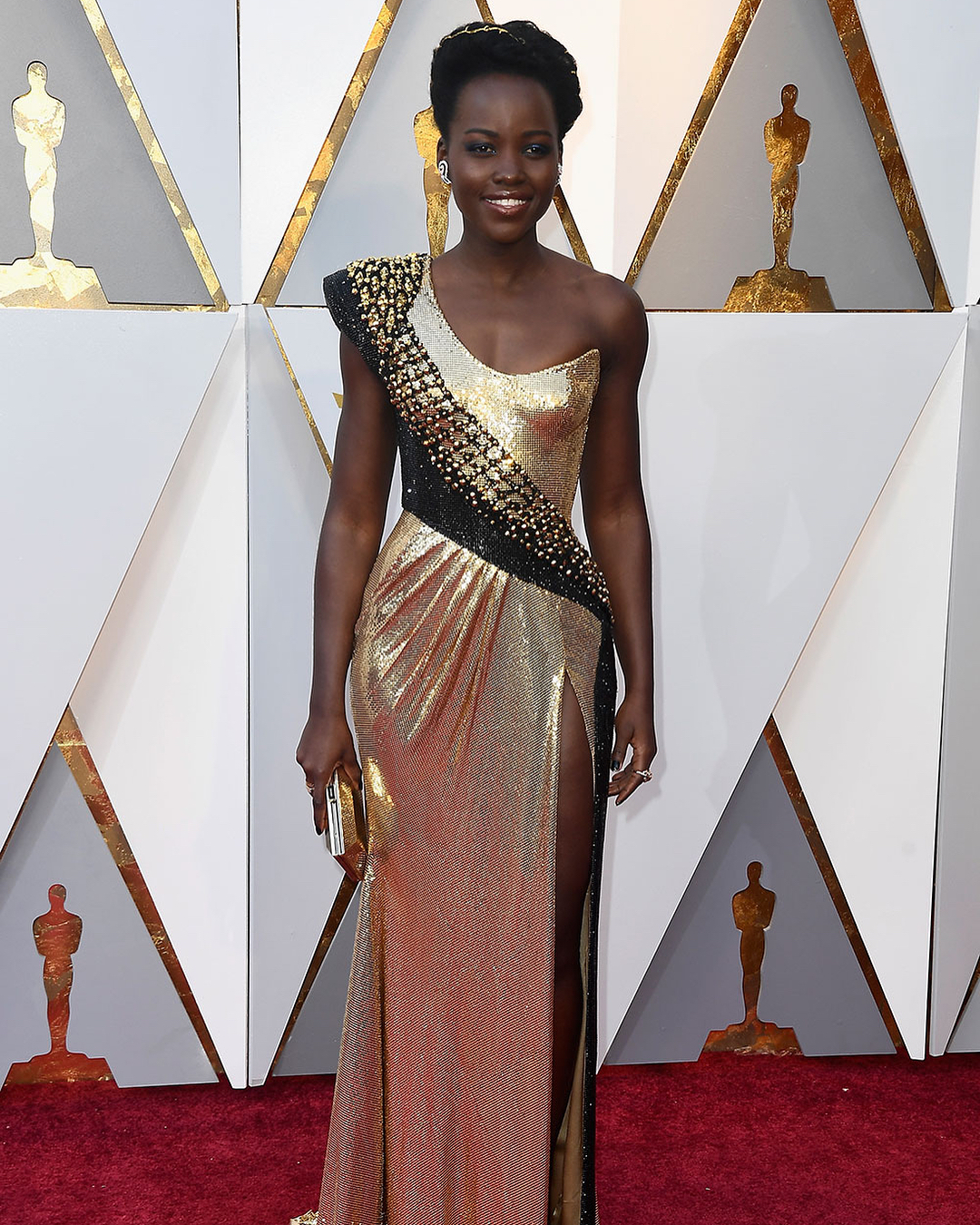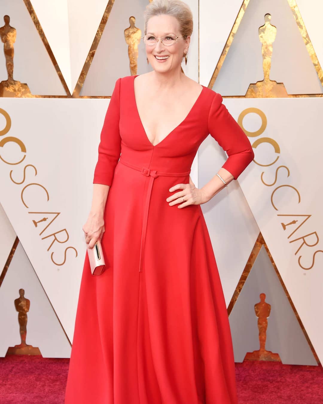 Saoirse Ronan e Greta Gerwig si sono presentate rispettivamente in rosa e in giallo, Helen Mirren ha sfoggiato un elegantissimo abito blu, Sally Hawkins si è presentata con un abito argento, mentre Meryl Streep in rosso acceso. Oro metallico per Jennifer Lawrence, ed Emma Stone, sfidando la consuetudine, ha scelto un tailleur con giacca rubino su pantalone nero, fasciato da una cinta fucsia.