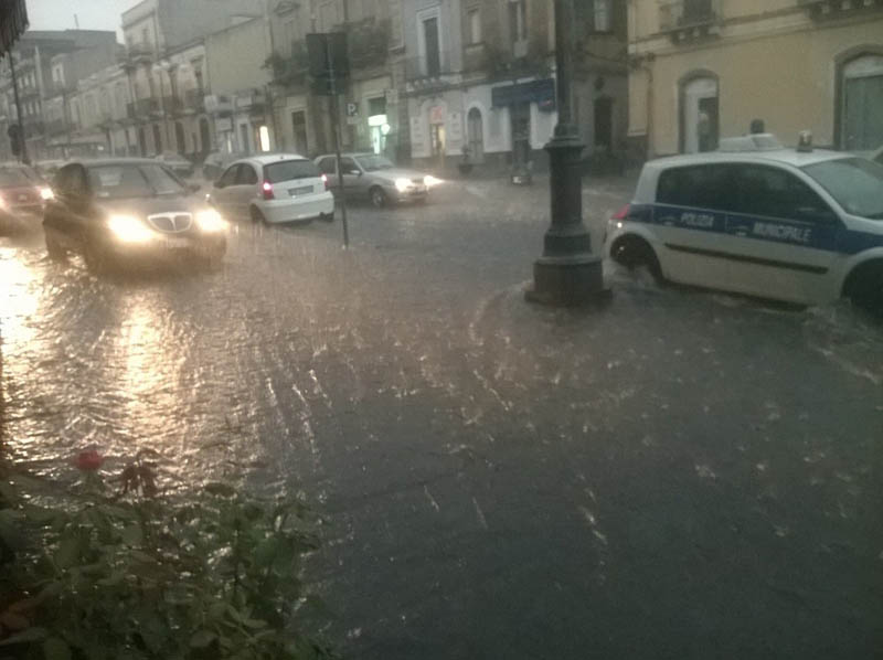 Un violento temporale ha causato l’esondazione del torrente Pescheria di Capo Mulini, frazione marinara di Acireale, provocando l’allagamento di garage e abitazioni al piano rialzato di un condominio.