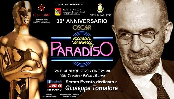 Per celebrare questo trionfo il Comune di Bagheria, con il patrocinio oneroso dell’assessorato regionale ai Beni culturali e dell’Identità siciliana ed il coordinamento dell’assessorato comunale ai Beni Culturali e Spettacolo diretto da Maurizio Lo Galbo, in occasione del trentesimo anniversario dall’Oscar ha deciso di farsi promotore di un evento on line, che verrà trasmesso il 28 dicembre, alle 21,30, sui canali social del Comune di Bagheria grazie alla produzione e collaborazione di Quintosol Production s.r.l. e Loredana Caltagirone e Giuseppe Sorce.