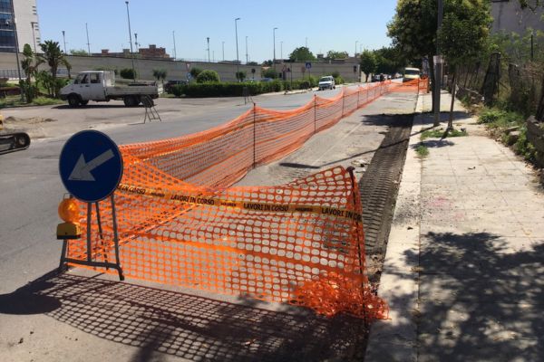 Il cantiere in via Pitrè per la realizzazione del nuovo semaforo pedonale all’altezza della Cittadella della Polizia