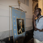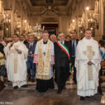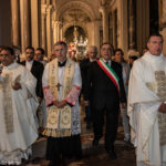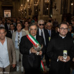 Il corteo è partito alle 18 da piazza Pretoria per arrivare in Cattedrale dove i ceri portati in dono dalle confraternite sono stati esposti davanti alla cappella di Santa Rosalia subito prima della celebrazione della santa messa.