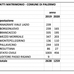 Gli iscritti sono stati 7.457, in diminuzione del 26,4% rispetto al 2019, mentre i cancellati sono stati 11.985, il 19,5% in meno rispetto all’anno precedente. Il saldo migratorio e per altri motivi è pari a -4.528 (nel 2019 -4.765). A Palermo, inoltre, più che dimezzati in un anno i matrimoni: da 2.638 nel 2019 a 1.259 nel corso del 2020.