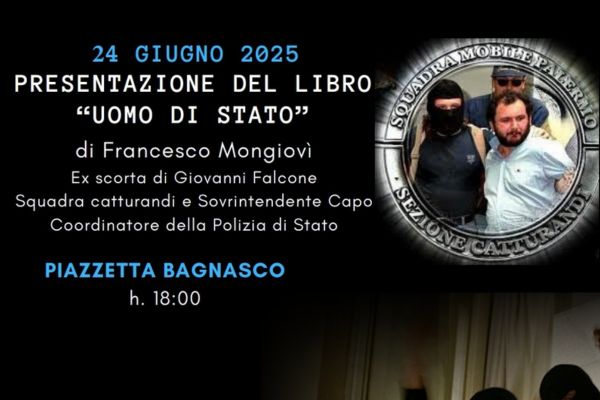Piazzetta Bagnasco, martedì 24 giugno, “Uomo di Stato”, il libro di Francesco Mongiovì, uno dei poliziotti che arrestarono Brusc