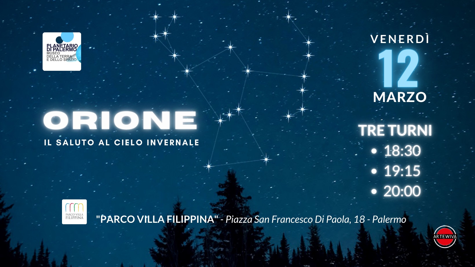 Porte aperte al Planetario e Museo astronomico del Parco di Villa Filippina (piazza San Francesco di Paola 18) con un nuovo appuntamento dedicato alla costellazione di Orione. Venerdì 12 marzo (ore 18.30, 19.15, 20.00) è la volta di “Orione, il saluto al cielo invernale”. In programma spettacoli sotto la cupola, un percorso guidato al museo astronomico e osservazioni ai telescopi, sul prato della Villa.