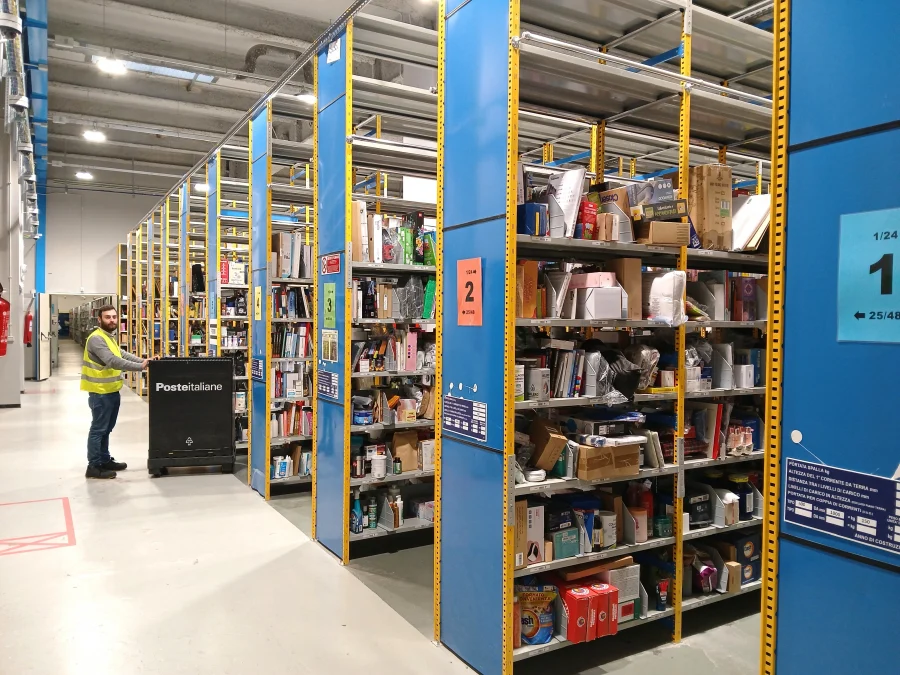 Nel magazzino di via Ugo La Malfa sono disponibili circa 70mila pezzi, accuratamente registrati e distribuiti su centinaia di scaffali suddivisi in 8.600 sottosezioni codificate. Anche quando un prodotto non è immediatamente disponibile in sede, Poste Italiane garantisce comunque la consegna in giornata per gli ordini effettuati entro le 8.30 del mattino, grazie al rifornimento rapido da altri magazzini presenti sul territorio nazionale.