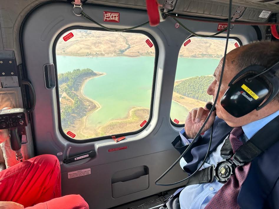 Il presidente della Regione Siciliana, Renato Schifani e il dirigente della Protezione civile regionale Salvo Cocina hanno sorvolato stamattina gli invasi di Piana degli Albanesi, dello Scanzano, di Rosamarina che servono il territorio in provincia di Palermo e del Fanaco che serve l’Agrigentino e parte del Nisseno; le condizioni dei bacini, sono apparse migliori rispetto a un anno fa, grazie anche a lavori avviati d’urgenza di riefficentamento delle traverse di adduzione.