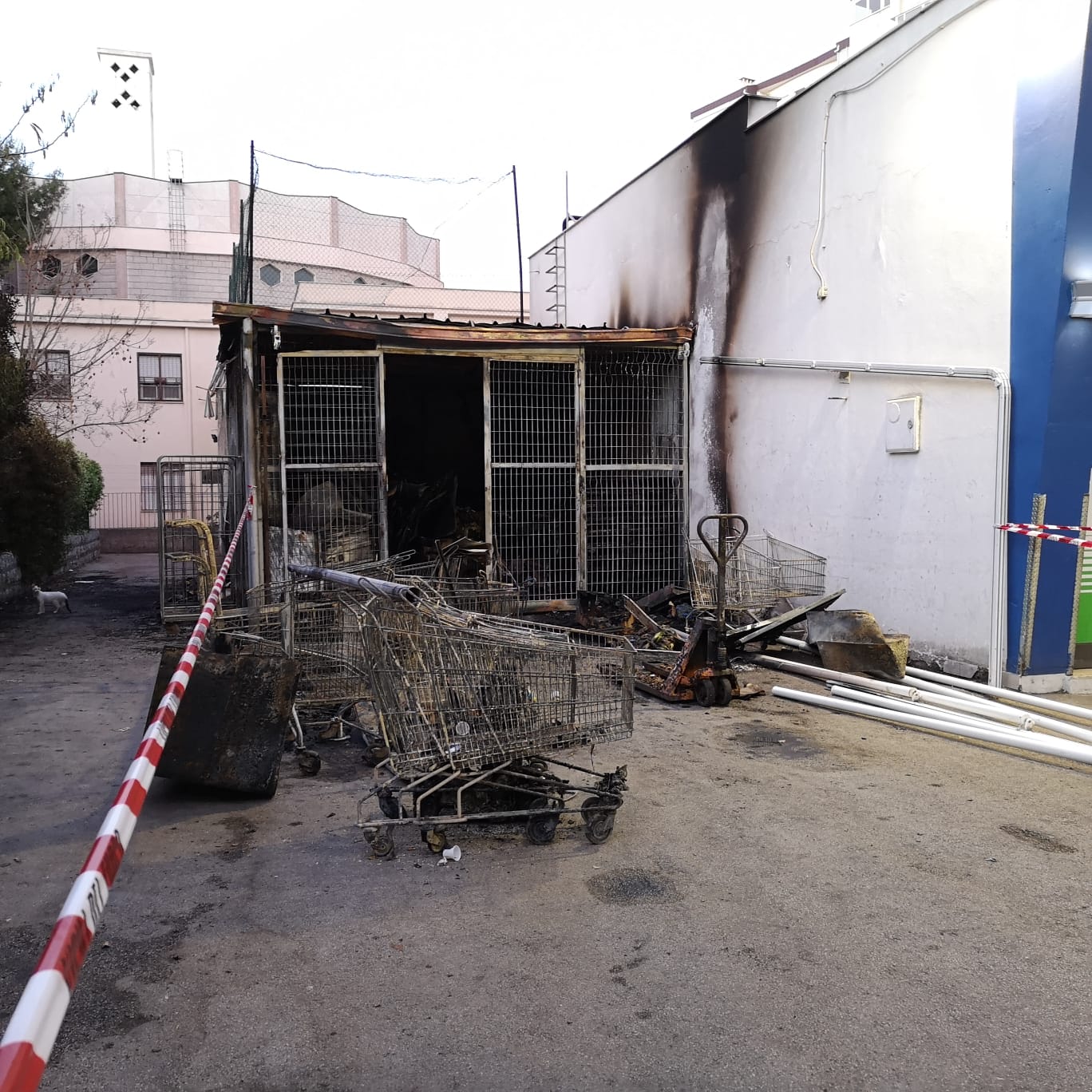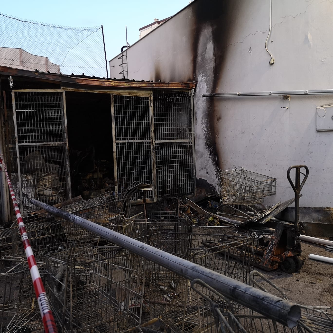 L’incendio è scoppiato all’interno di un magazzino del supermercato Sisa con all’interno cassette di frutta, che sono andate a fuoco.