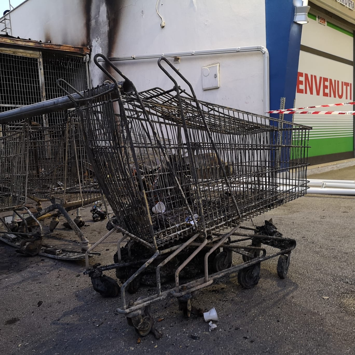 Gli agenti hanno dovuto scassinare il supermercato per permettere ai vigili del fuoco di spegnere le fiamme. Indagini in corso per individuare le cause dell’incendio.