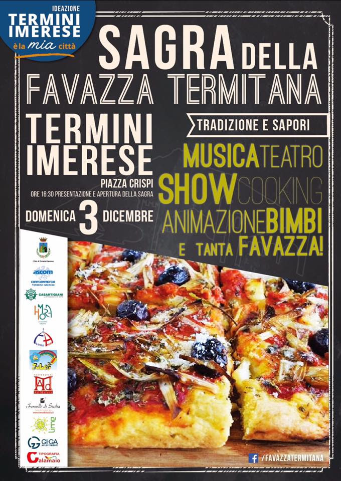 Sagra della Favazza Termitana. L’evento si terrà domenica 3 dicembre a Termini Imerese, più precisamente a Piazza Crispi, a partire dalle ore 16:30 con tanta musica, animazione e soprattutto un invitante odore per le vie della città .