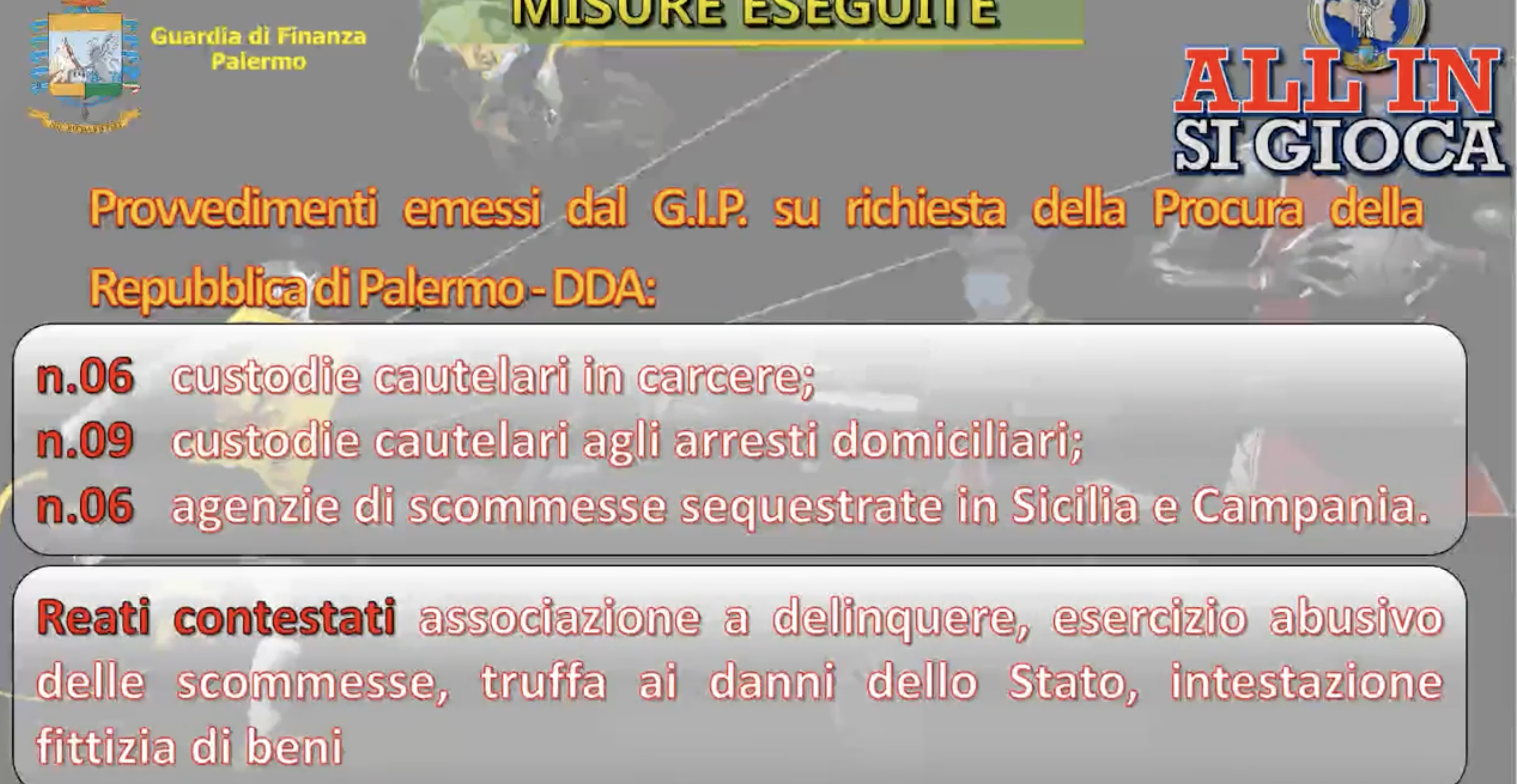 Le complesse investigazioni oggetto dell’odierno provvedimento costituiscono la prosecuzione dell’operazione “ALL IN” (giugno 2020), nel cui ambito le Fiamme Gialle di Palermo eseguirono:
