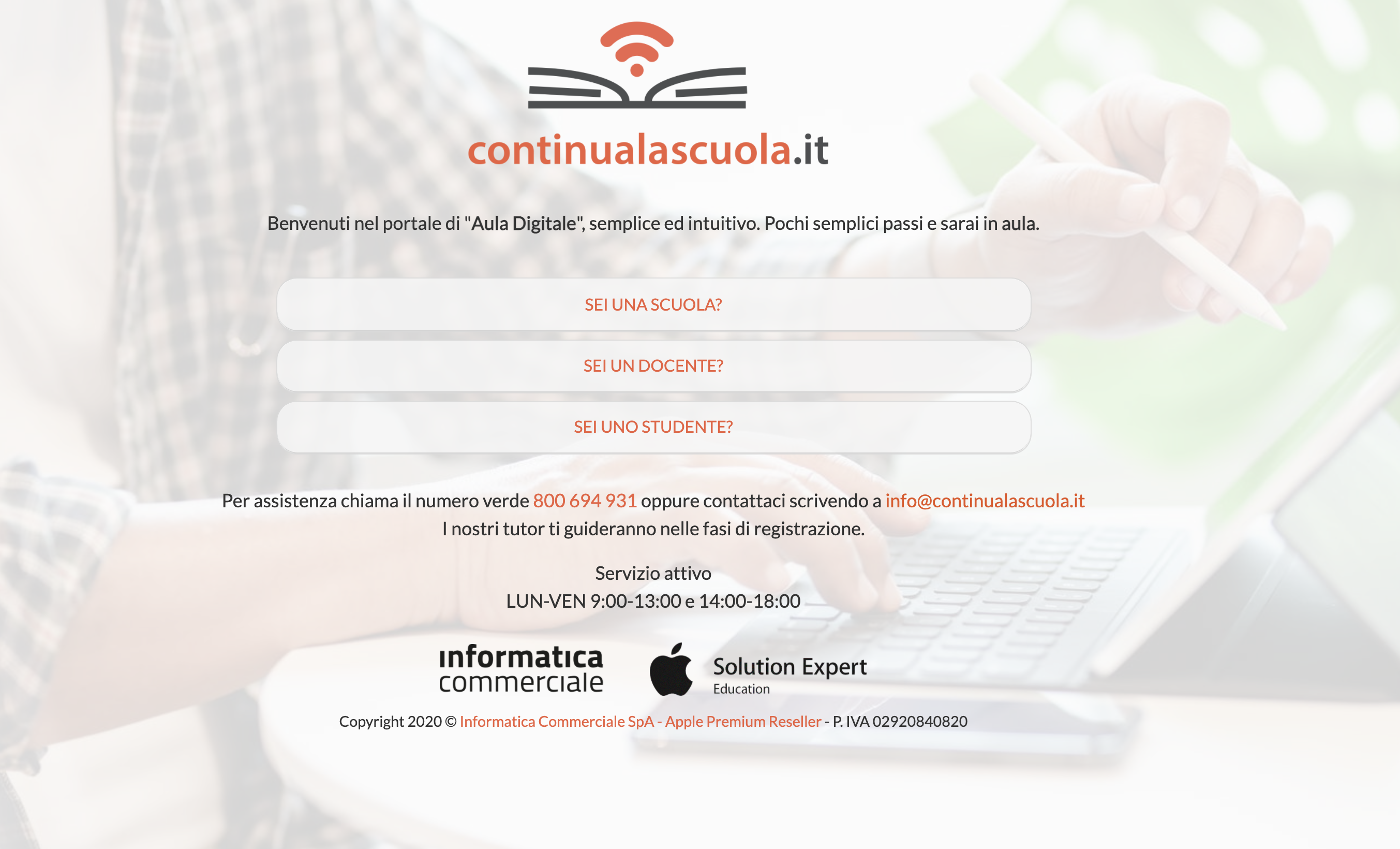 A supporto degli istituti, nella fase di accesso alla piattaforma e per ogni ulteriore informazione, è disponibile un numero verde numero (800694931) in grado di fornire assistenza. Inoltre, una task-force di esperti garantirà il costante supporto tecnico e operativo su tutto il territorio regionale, allo scopo di facilitare l’attivazione dei processi di teledidattica.