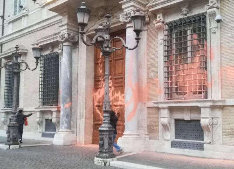 ROMA (ITALPRESS) – Quattro persone appartenenti al gruppo ambientalista Ultima Generazione hanno imbrattato Palazzo Madama, sede del Senato, con un getto di vernice arancione, utilizzando degli estintori. Alla base del gesto quello che gli ambientalisti definiscono come “il disinteresse del mondo politico di fronte ai dati e le notizie sempre più allarmanti sul collasso eco-climatico”. “Ho scelto e continuerò a scegliere di compiere azioni di disobbedienza civile nonviolenta perchè sono disperata. La narrativa tanto in voga secondo la quale ognuno di noi può individualmente contribuire a limitare i danni del riscaldamento globale, salvando il pianeta, è senz’altro positiva ma fortemente irrealistica”, sottolinea una manifestante.“Sono i governi e le istituzioni ad avere il potere decisionale per avviare una transizione energetica effettiva. L’azione individuale non basta. Non possiamo illuderci che fare la raccolta differenziata e partecipare a cortei organizzati sia sufficiente. E’, di conseguenza, proprio al governo e alle istituzioni che rivolgiamo la nostra rabbia di protesta”, conclude.