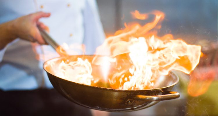 Il flambè è un procedimento di cottura a cui si aggiunge liquore in una padella calda per creare una fiammata.