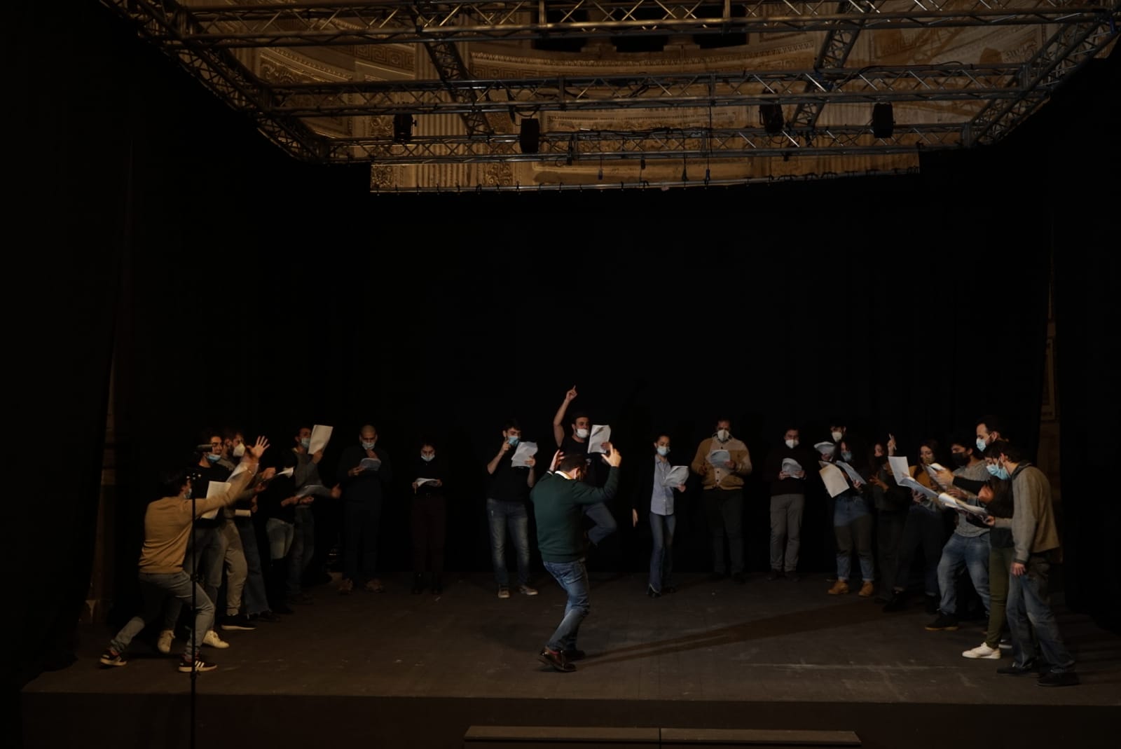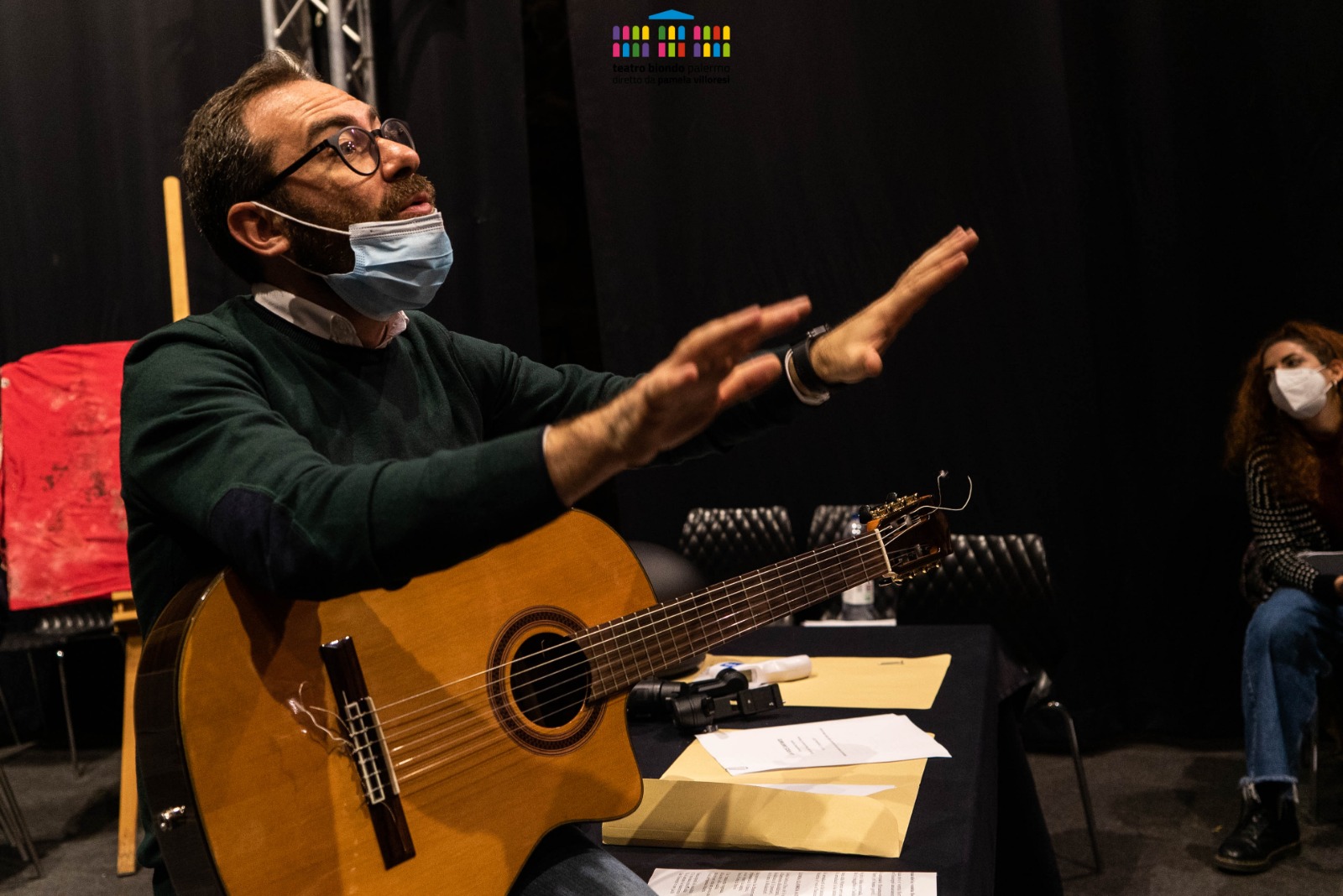 Nel frattempo, durante i lavori di restauro del cantiere avviato lo scorso anno grazie al protocollo d’intesa tra il Teatro Biondo e il dipartimento di Fisica e Chimica dell’Università degli Studi di Palermo, sotto l’alta sorveglianza della Sovrintendenza dei Beni culturali, in una delle pareti del Teatro è stato ritrovato un prestigioso dipinto del Novecento, raffigurante due allegorie della Tragedia e della Commedia, realizzato nel 1903 da Carmelo Giarrizzo su disegno di Salvatore Gregorietti. Il cantiere, che vede impegnati tirocinanti e restauratori dell’Università sotto la direzione di Ambra Giordano, restauratrice referente della sezione pittorica e Fabrizio Iacopini, restauratore referente della sezione lapidea, concluderà i lavori entro la fine dell’anno.