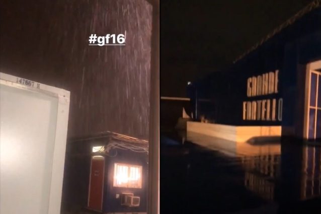 A mezzanotte e trenta i telespettatori non sentivano più le voci in diretta, al posto delle quali si sentiva un forte rumore che ha costretto la produzione a interrompere il live. La D’Urso è voluta entrare in acquario per constatare di persona i danni, ma senza incontrare gli inquilini. Li ha spiati, filmando tutto con il suo smartphone e pubblicando i video sulle sue storie Instagram. Panico anche per la conduttrice, che ha dovuto chiedere ai suoi assistenti di chiudere il suo camerino mobile in cui stava entrando la pioggia incessante.