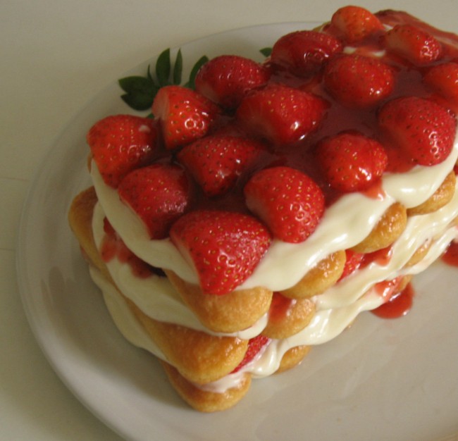 Lavate le fragole, poi tagliatele a pezzetti e mettetele a macerare per 12 ore con il succo dei limoni e 160 g di zucchero, conservandone qualcuna da parte per la decorazione finale. Trascorso questo tempo filtrate le fragole con un colino e raccoglietene il succo in un recipiente. Riducete le fragole in poltiglia, aggiungete ancora dello zucchero e il mascarpone. Mescolate il tutto fino ad avere un composto omogeneo. Immergete i savoiardi nel succo di fragola e ricoprite con alcuni uno stampo, versatevi una parte di crema, poi ancora savoiardi e finché non avrete finito e terminate con uno strato di crema, decorando con le fragole tenute da parte tagliate a fettine.