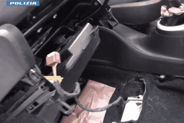 Fermato il mezzo il conducente è stato identificato, ma, per l’insofferenza e la particolare agitazione mostrata, è stato sottoposto a un’ispezione del mezzo. Sotto al parasole lato conducente, è stato trovato un involucro con 0,8 grammi di cocaina ma era sotto al suo sedile che nascondeva il ‘bottino’ più consistente: 3 panetti contenenti ciascuno 1.035 grammi di cocaina per un totale di circa 3.100 grammi lordi, sequestrati.