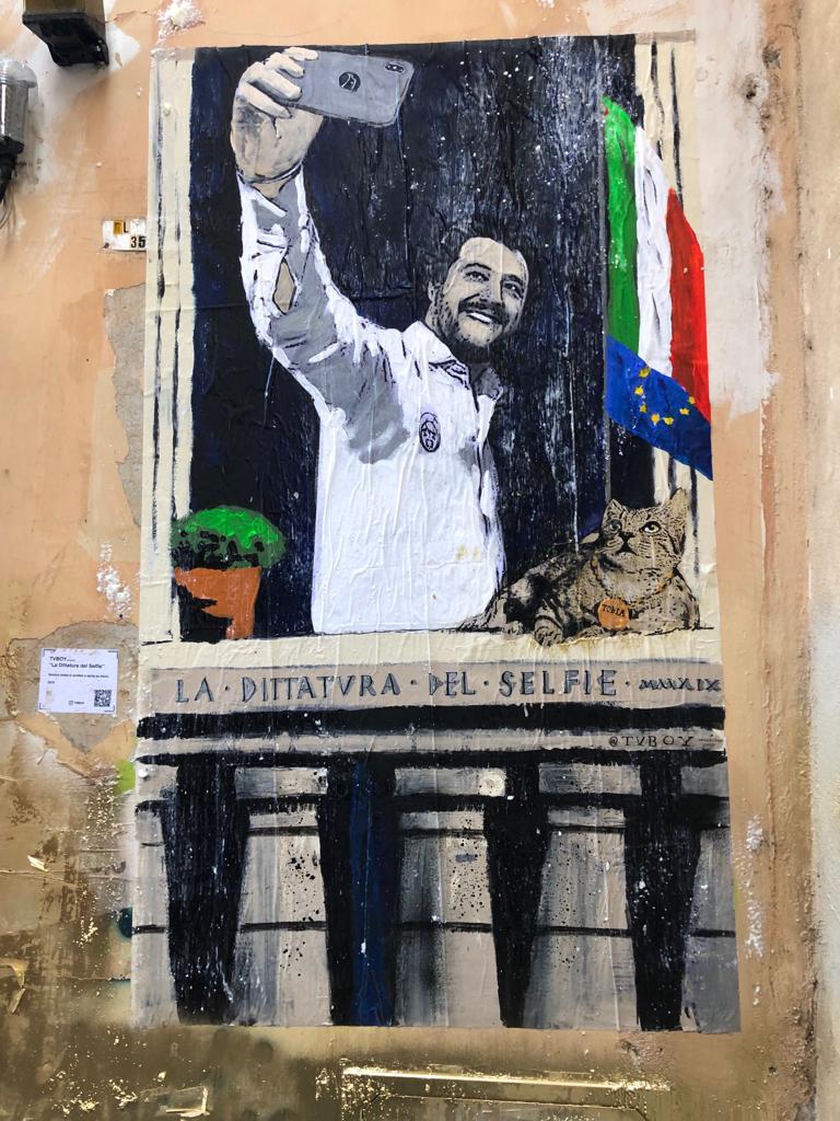 L’opera si intitola “La Dittatura del Selfie” ed è stata affissa a via Dei Polacchi, zona Piazza Venezia.