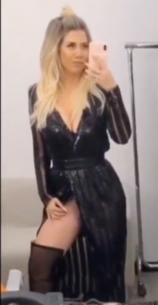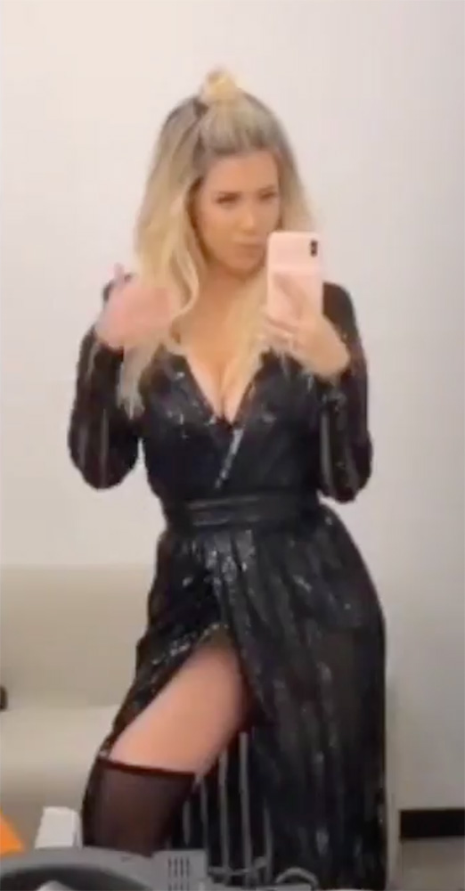 Wanda Nara durante la ripresa non si accorge non si accorge dell’eccessiva estrosità del suo vestito…
