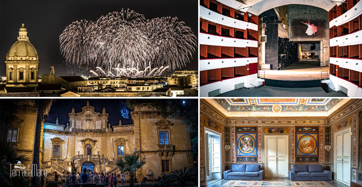 • sabato 13 luglio dalle 19:20: NOTTE A VILLA PALAGONIA. Visite serali a Villa Palagonia, conosciuta come la “Villa dei Mostri” per le misteriose statue di cui è circondata. Turni: ore 19:20 – 20 – 21:20 e ore 22. Ticket € 7. Su prenotazione.