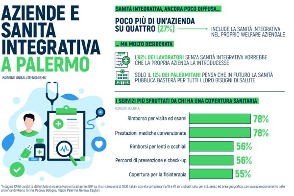 Sempre di più i palermitani vogliono lavorare in aziende che dimostrino di occuparsi del loro benessere, offrendo stipendi adeguati ma anche altri benefit che migliorino concretamente la qualità della loro vita. Secondo quanto emerge dall’ultima indagine dell’Osservatorio Sanità, condotto da Nomisma per UniSalute, i servizi legati alla salute risultano tra i più richiesti e apprezzati, ma ancora solo una minoranza delle imprese del capoluogo siciliano prevede una qualche forma di sanità integrativa per i propri dipendenti.