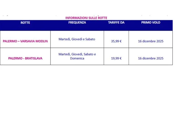 L’introduzione dei voli per Varsavia e Bratislava è cruciale non solo per la strategia di sviluppo dell’Aeroporto Internazionale “Falcone Borsellino” ma dell’intera regione, che si conferma come una piattaforma di connessione vitale nel Mediterraneo. Queste nuove rotte non solo arricchiscono l’offerta per il traffico leisure tradizionale, ma vogliono arrivare anche ai segmenti turistici ad alto potenziale, contribuendo in modo significativo alla destagionalizzazionedei flussi. Parallelamente, si aprono nuove e concrete opportunità per l’interscambio commerciale e business, facilitando i rapporti tra le imprese siciliane e un’area europea in forte espansione economica. Con queste nuove destinazioni, i collegamenti internazionali gestiti dalla regione Sicilia salgono a 19.