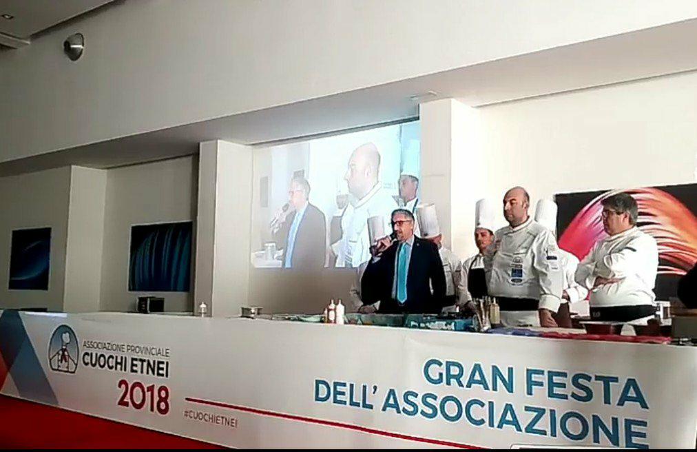 Luogo suggestivo, ancora una volta, il contesto di Zafferana Etnea, dove sul palco dell’Esperia Palace Hotel le berrette bianche del vulcano hanno dato vita ad una intensa mattinata. A salutare i soci intervenuti e ad aprire i lavori, il presidente dell’Associazione Provinciale Cuochi Etnei, Seby Sorbello, con il segretario Vincenzo Mannino e i componenti il direttivo. “Stare insieme, condividere le nostre esperienze sia professionali che umane, è il primo aspetto che ci contraddistingue, – ha detto Seby Sorbello – unito al conseguimento di una costante crescita culturale. Siamo lieti di avere arricchito il nostro calendario di appuntamenti, già molto fitto, con un altro prestigioso evento che sin dall’inizio abbiamo definito la Festa per Te, dove al centro c’è il socio, giovane o anziano che sia, allievo o cuoco professionista”.